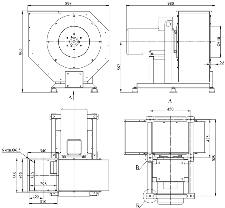 - Конструкция вентилятора позволяет устанавливать спиральный корпус под различными углами установки(от 0 до 315° с шагом 45°) нагнетательного отверстия вентилятора относительно исходного нулевого положения. Базовое положение корпуса вентилятора — нагнетательное отверстие вертикально вверх (Пр0°).